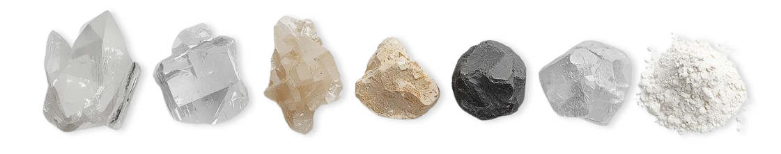 High-purity crystalline silica widely used in glass, ceramics, and engineered stone industries.